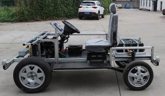 采用電動(dòng)汽車(chē)前橋、前橋及懸架系統、轉向系統、制動(dòng)系統、車(chē)身系統、車(chē)身電器系統、驅動(dòng)系統、傳動(dòng)系統、行駛系統、控制系統、方向盤(pán)、方向機、電動(dòng)真空助力泵、、油門(mén)、高壓電池組、12V系統電源蓄電池、車(chē)載充電機、后橋及懸架總成,驅動(dòng)電機、單速變速器、電機控制器、燈光信號系統、儀表系統、各種長(cháng)度要求的鋁型材框架材料等組成。