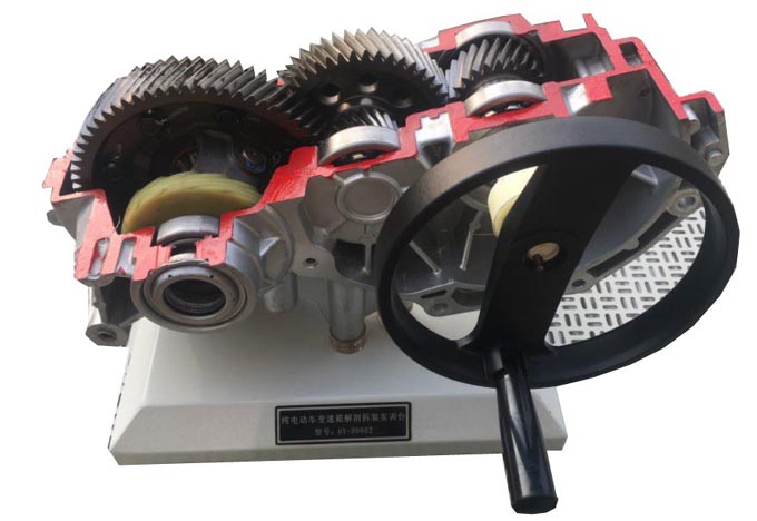 本設備臺架以剖切北汽新能源原車(chē)變速器總成為基礎,經(jīng)過(guò)剖切加工制作而成,使變速器內部結構清晰可見(jiàn),能充分展示新能源汽車(chē)變速器的結構組成、工作特點(diǎn)和工作原理。手動(dòng)轉動(dòng)輸入軸,變速器整體可實(shí)現動(dòng)態(tài)演示,動(dòng)態(tài)觀(guān)察其工作原理。本設備具有較強的教學(xué)意義,配套實(shí)訓指導資料,合格證,保修卡。