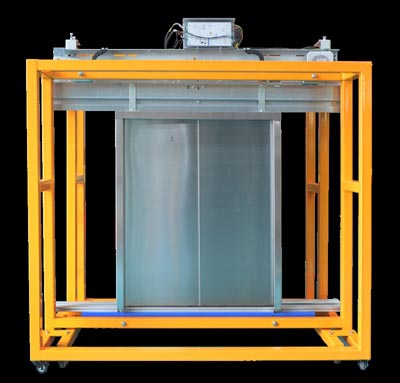 本裝置主要由鋼結構框架、門(mén)框、層門(mén)門(mén)扇、層門(mén)地坎、層門(mén)上坎、轎廂龍門(mén)架、轎廂門(mén)扇、轎廂門(mén)地坎、門(mén)機等部件組成 。學(xué)生根據隨機文件資料說(shuō)明,在鋼結構框架上進(jìn)行安裝與調整,使其符合電梯門(mén)系統相關(guān)規范要求。另外,為能夠使學(xué)生更方便的觀(guān)看門(mén)系統結構,為能夠使學(xué)生更方便的對轎門(mén)跟層門(mén)進(jìn)行操作,該裝置還可把轎門(mén)跟層門(mén)進(jìn)行分離單獨操作。