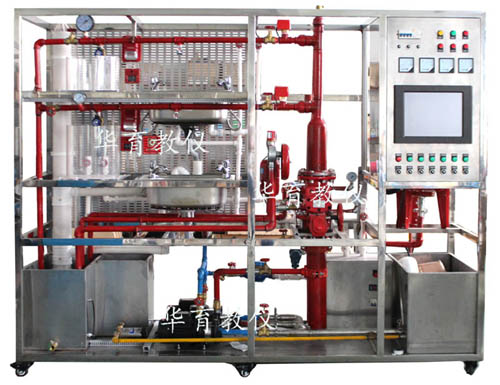 消防給水系統主要有給水箱、噴淋泵、穩壓罐、濕式報警閥、壓力開(kāi)關(guān)、水流指示器、消防給水管道、閉式噴淋頭等組成。管路采用鍍鋅管進(jìn)行設計,可進(jìn)行鍍鋅管的切割、套絲、安裝和通水試驗操作,通過(guò)控制系統可實(shí)現噴淋滅火功能。