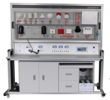 物聯(lián)網(wǎng)智能家居實(shí)訓系統采用開(kāi)放式和拆裝式結構設計,采用鋁合金型材+網(wǎng)孔板結構,桌面為高級防火防水板,耐磨高密度板,結構堅固,配有常用電源控制柜,能對各系統進(jìn)行供電、接線(xiàn)、調試運行和維護實(shí)訓和考核。設備有設備備柜,用于放置工具、存放資料等,實(shí)訓桌還設有四個(gè)萬(wàn)向輪和四個(gè)固定調節機構,便于移運和固定,有利于實(shí)訓室布局。本系統全部元器件均采用實(shí)物,整個(gè)實(shí)訓裝置主要由幕簾探測器、ZIGBEE主機、聲光報警器、Zigbee感煙探測器、然氣探測器、Zigbee燈光控制開(kāi)關(guān)、Zigbee智能調光開(kāi)關(guān)、APP監控系統等組成。