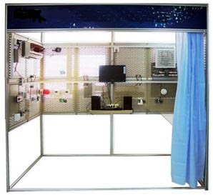 智能家居網(wǎng)板實(shí)訓系統主要由環(huán)境感知設備、安防門(mén)禁設備、控制設備、視頻監控設備、智能網(wǎng)關(guān)、智能終端、以及鋁合金鋼架結構組成。