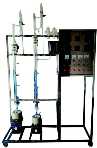 1、雙玻璃填料塔,塔體直徑φ20mm,塔1:高1400mm,塔2:高1200mm。不銹鋼φ2×2mmθ網(wǎng)環(huán)填料,塔體外壁二段透明導電膜加熱保溫,塔釜容積500ml。雙塔可獨立操作。