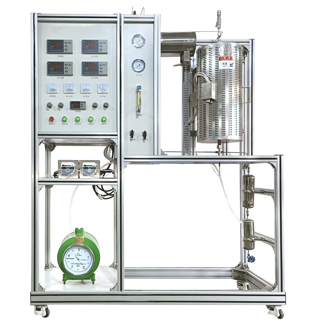蠕動(dòng)泵、質(zhì)量流量計、混合器、汽化器、反應器、氣液分離器、冷凝器、壓力表、濕式氣體流量計、閥門(mén)、實(shí)驗管道、溫度傳感器、中央處理器、觸摸屏、高品質(zhì)鋁合金型材框架。