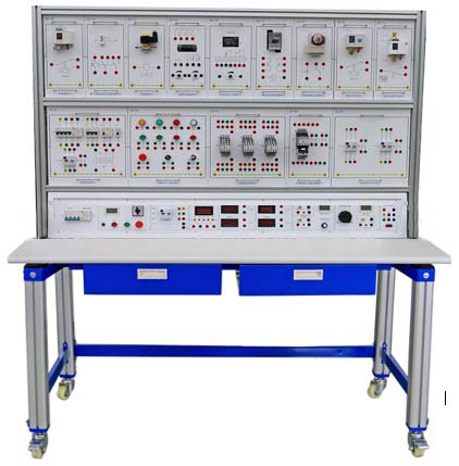 總體結構:實(shí)訓臺架由實(shí)訓桌、電源控制單元、儀表顯示單元等多個(gè)部分組成。臺架以經(jīng)氧化處理的高材質(zhì)40mm×40mm鋁合金作為設備主要框架材料;臺架采用鋁合金的本體顏色,電源箱體采用灰色1.2mm鋼板制作。實(shí)訓屏底部裝電源控制屏,電源控制屏的面板布局從左至右依次為電源指示和電源控制單元、含電源保護單元、指示燈和按鈕單元、急停開(kāi)關(guān)、儀表單元、直流電源單元;實(shí)訓桌桌面采用25mm麻灰色高密度層壓板封邊特制,有效提高絕緣等級。