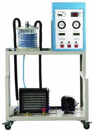 包括壓縮機、冷凝器、干燥過(guò)濾器、毛細管、有機玻璃圓柱體、紫銅管繞制的蒸發(fā)器、加熱器、馬達和攪拌器等。
