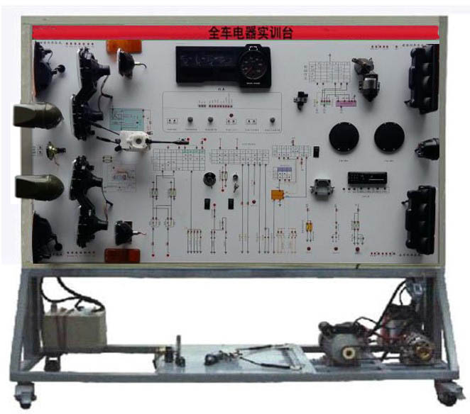 2.設備面板采用耐創(chuàng )擊、耐污染、防火、防潮的高級鋁塑板,表面經(jīng)特殊工藝噴涂底漆處理;面板打印有彩色電路圖;學(xué)員可直觀(guān)對照電路圖和實(shí)物,認識和分析汽車(chē)整車(chē)電器各系統的工作原理。