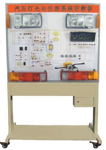 本產(chǎn)品選用汽車(chē)燈光與儀表系統實(shí)物,展示汽車(chē)燈光與儀表系統的結構與原理;面板上繪有完整的燈光與儀表系統的電路圖,設置有檢測端子,可通過(guò)儀器儀表檢測各種信號參數如電壓、電阻、頻率等。