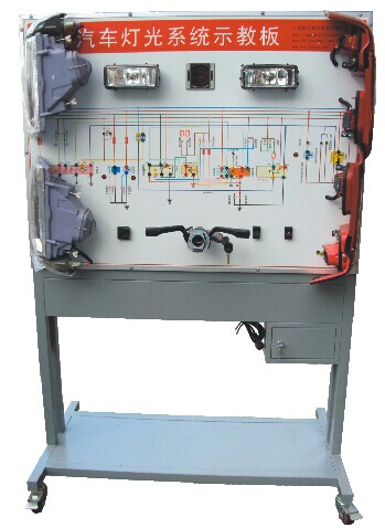 本產(chǎn)品選用原車(chē)燈光系統實(shí)物,展示汽車(chē)燈光系統的結構與原理;面板上繪有完整的燈光系統的電路圖,設置有檢測端子,可通過(guò)儀器儀表檢測各種信號參數如電壓、電阻、頻率等。
